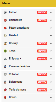 El indicador de pago anticipado aparece en la vista del campeonato, en el menú de deportes al lado de las ligas seleccionadas, en la vista de eventos y también en la boleta de apuestas y el historial de apuestas.